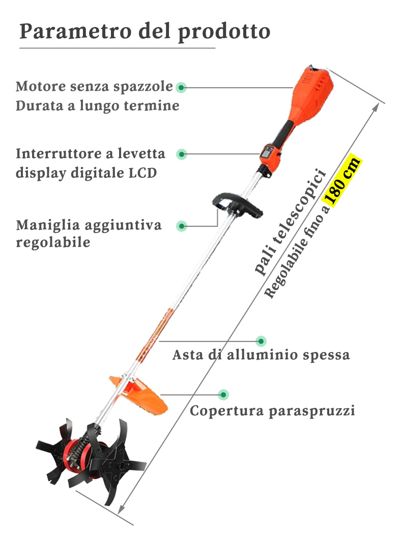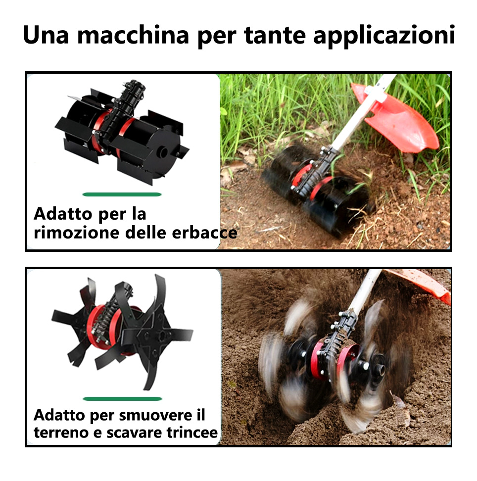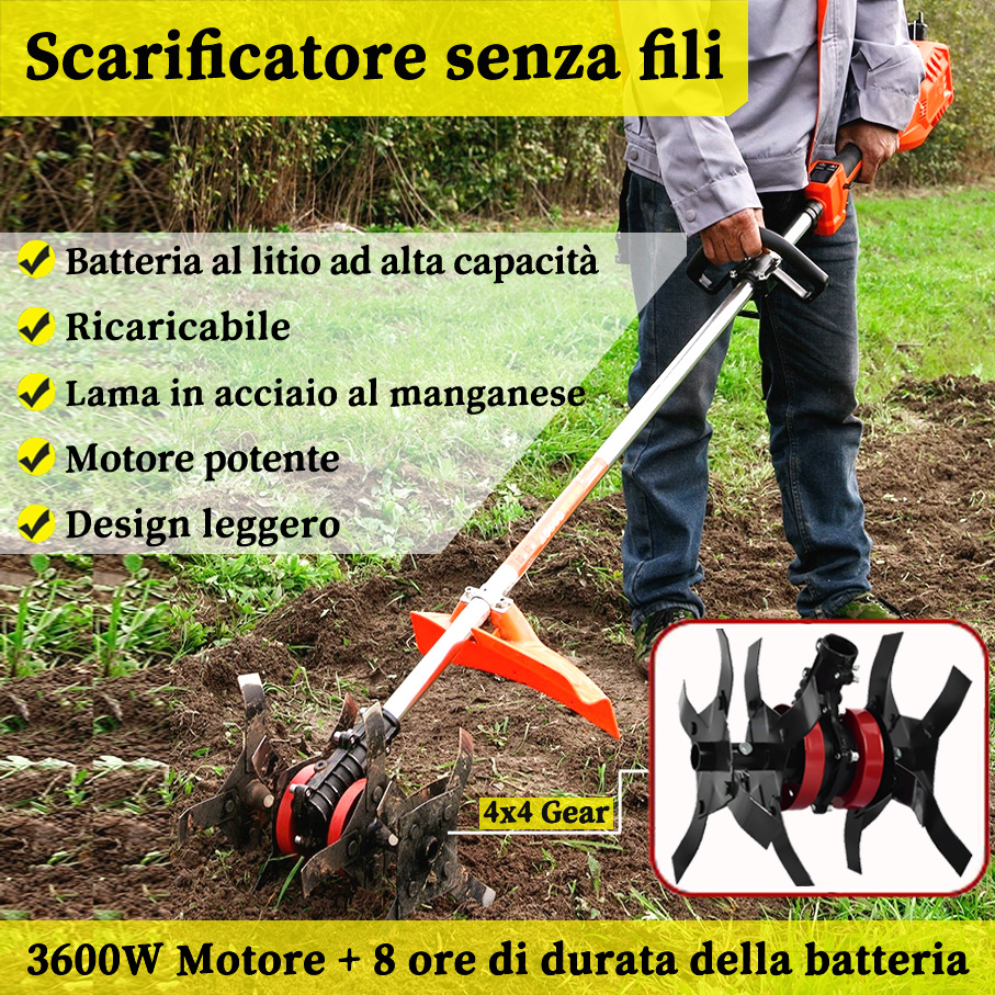 IT-Scarificatore portatile senza fili con batteria al litio, uno strumento da giardinaggio con funzioni 3 in 1 di scarificazione, scavo di trincee e diserbo